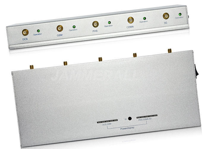Όταν η πλήρης τηλεφωνική σιωπή κυττάρων απαιτείται, αυτό το τηλεφωνικό Jammer κυττάρων 5 κεραιών με τον τηλεχειρισμό είναι η απάντηση. Με πέντε υψηλές κεραίες κέρδους της, παίρνετε τη συχνότητα βιομηχανικός-δύναμης φράσσοντας που είναι αρκετά ισχυρή να αναστατώσει όλα τα τηλεφωνικά σήματα κυττάρων (3G, GSM, CDMA, DCS). Παρέχει επίσης 10 Watt της δύναμης παραγωγής που θα φράξουν ακόμη και τα ισχυρότερα σήματα, τα οποία δεν μπορούν συνήθως από οι χαμηλότερες εκδόσεις 3-5 να σταματήσουν Watt.